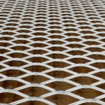 この作品は、アルミニウム製のパンチングメタルに蓚酸アルマイト(シュウ酸アルマイト)処理を施したもので、美しい金色(またはブロンズやステンカラー)に発色しています。 板の表面全体に開けられた円形の穴(ドット)の密度によって濃淡が表現されており、そのパターンが2025年大阪・関西万博の公式キャラクター「ミャクミャク」の姿を形作っています。これは、デザインパンチングまたはアートパンチングと呼ばれる技法です。 ミャクミャクの特徴的な円形の目のような部分や、複数の細胞のようなパーツがドットの集積として表現されており、ユニークなアート作品となっています。素材の質感とハーフドーン(網点)のような視覚効果が融合した、建築内装材やオブジェとしても使用可能な高い意匠性の製品です。