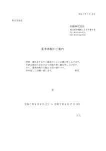 夏季休暇のご案内